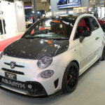 YOKOHAMAホイールのブースに展開されたアバルト695。注目は、チンク系に対応するPCD98/4Hの17インチに加わった、鍛造モデル「ACVAN RACING GT BEYOND」。カラーはRacing Whiteで、ガチなスポーツ勢にドンピシャ! また、ボトムまわりにはさり気なくHKS製の試作スポイラーが装着されていた!