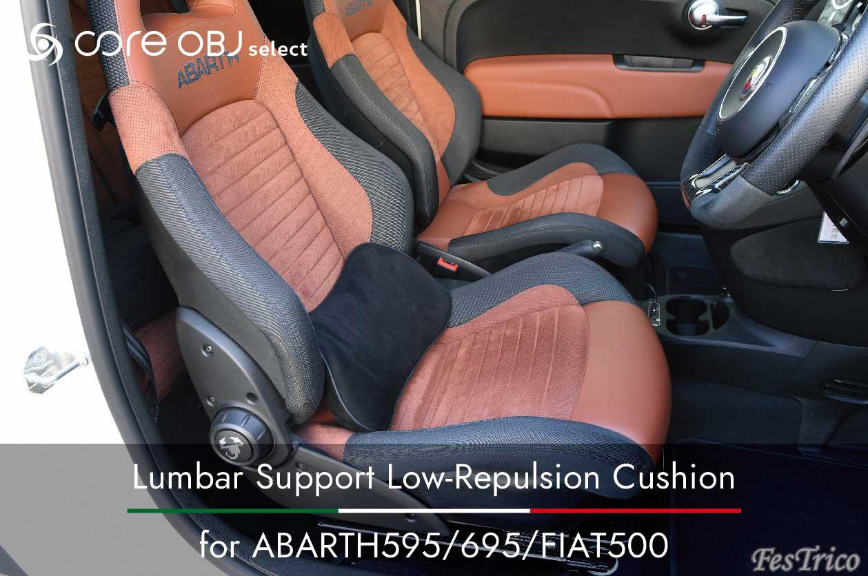 <core OBJ select Suede Lumber Support Low-Repulsion Cushion for ABARTH595・695/FIAT500> ブラック/ブラウン/シルバー/ダークブラウン:¥7,700 http://codetech-core.jp/obj/lumbar_support_low_repulsion_cushion/