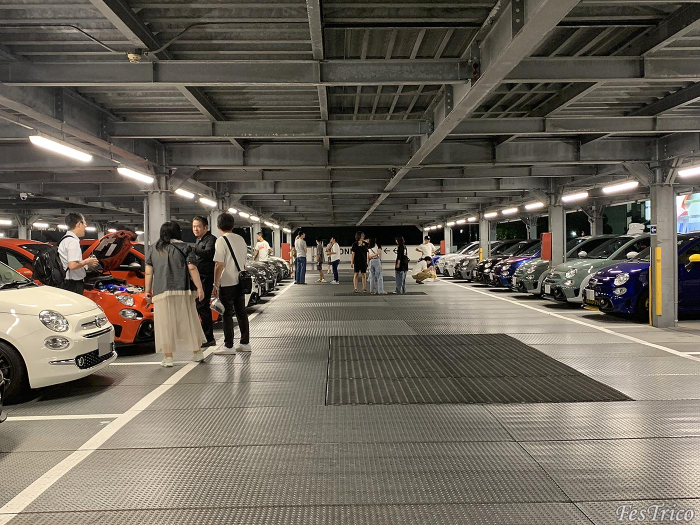 夜なら涼しいかなぁ〜と甘く見てましたが、都心はまだまだホット。かなり蒸し暑かったですが、たくさんのフィアット&アバルトオーナーさんが集まってきました!