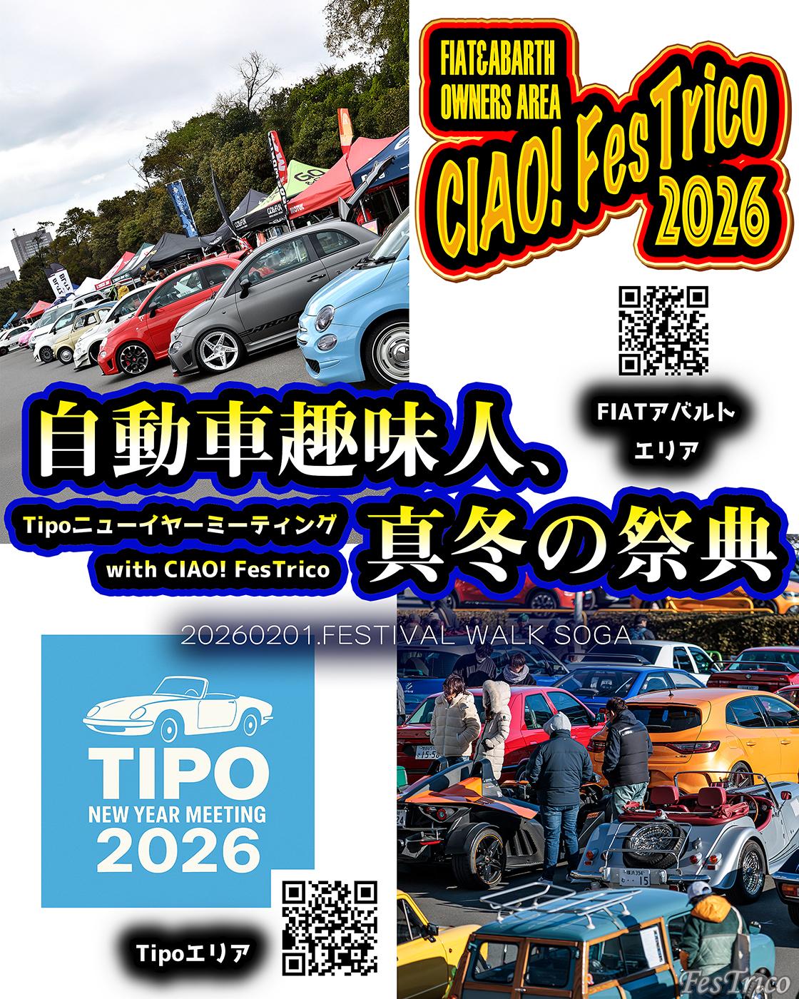 すでにお伝えしたように、2026年の2月1日にFesTricoは真冬のミーティングイベント「CIAO! FesTrico2026」を開催します! しかも今回は、あの雑誌Tipoさんとのコラボ開催。FesTricoはフィアット&アバルトゾーンを担当します!