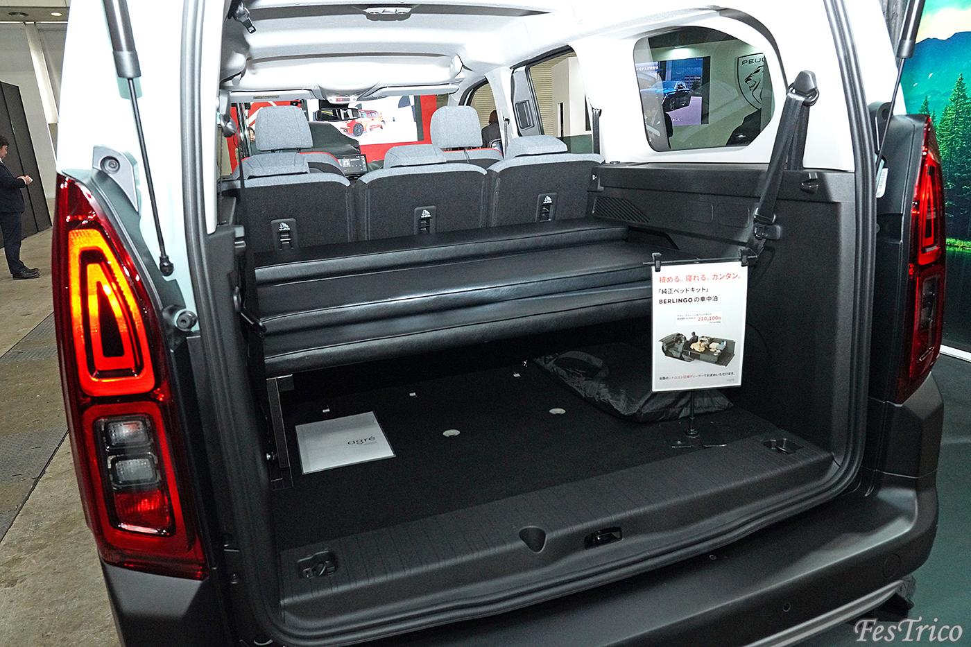 ドブロではありませんが…兄弟モデルのベルランゴも人気のミニバン。ワイルドなアウトドアユーステイストのカスタマイズが映える! ステランティスのブースで見た、純正のベッドキット。ドブロにも使えるんですかね〜。