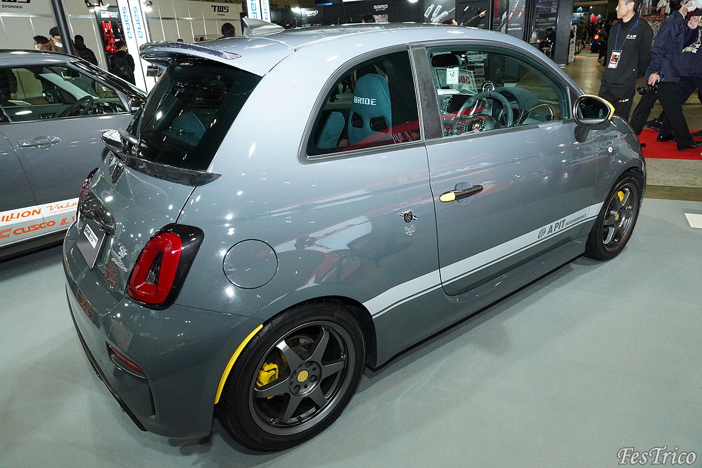 T”s CLUBのアバルト595は、オリジナルのエアロパーツを纏ったスポーティルックがポイント。