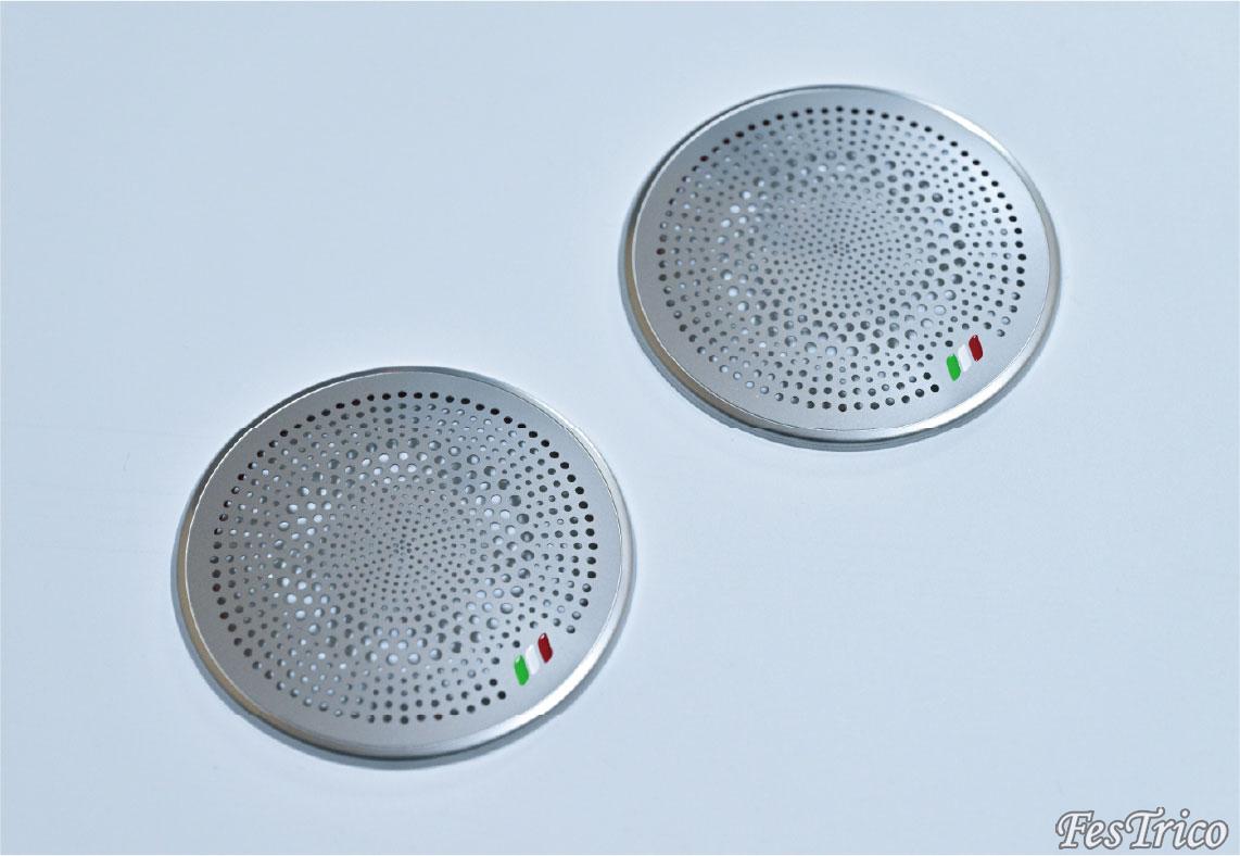 防錆、耐熱、耐食性に優れ、細かく開けられた穴によって、音質への影響も与えない。