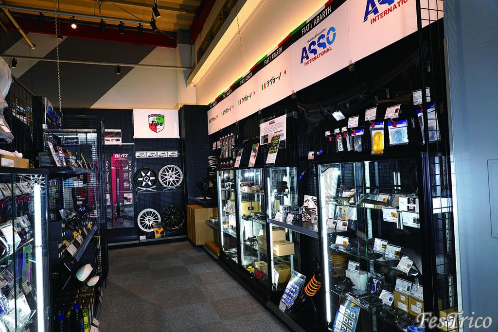 「ラヴォーノ」「ASSO」「アルバートリック」をはじめ、お馴染みの有名・人気ブランドのアイテムもいっぱいで、眺めているだけでワクワク。フィアット&アバルト乗りは、ぜひ一度訪問してみよう。