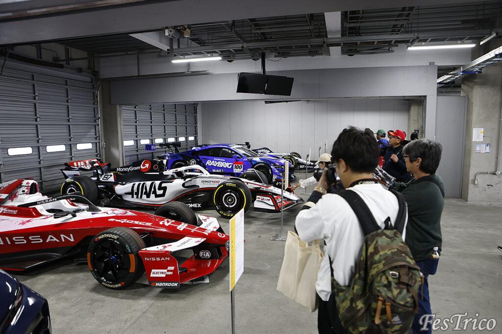 「ウイリアムズFW11」「ベネトンB189」のF1マシン、富士モータースポーツミュージアムの展示車「トヨタ7」をはじめ、栄光のレーシングカーたちがホームストレー トに整列。コース上から間近に車両を見ることができる。