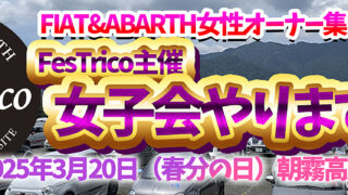 FesTrico初企画のフィアット&アバルト女子限定ミーティング『FesTrico女子会@朝霧高原もちや』。いよいよ、2月8日の12:00からライブポケットさんにてチケット販売がスタートします! お手伝いスタッフさんも募集しますので、男女不問で受け付けます。こちらもライブポケットにてお申し込みを