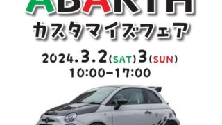 A PIT AUTOBACS SHINONOMEでは、来る3月2〜3日の週末に「ABARTH カスタマイズフェア」と題した店舗型イベントを実施することを発表した!