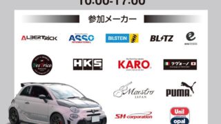 A PIT AUTOBACS SHINONOMEが開催する、恒例の『アバルトカスタマイズフェア』。いよいよこの週末、3月1〜2日に実施が近づいてきた!