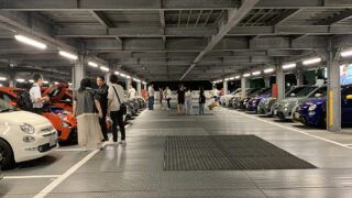 A PIT AUTOBACS SHINONOME恒例の「アバルトナイトミーティング」。毎月第3水曜日は、立体駐車場をアバルトオーナーがジャック! 8月の開催は20日でした。お集まりいただいた皆さま、ありがとうございました〜