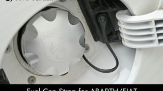 長く使っていると、経年劣化により切れてしまうことも少なくない、フィアット・アバルト純正の燃料キャップストラップ。