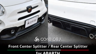 コードテックCAMのcore OBJ シリーズから新発売された、「Front Center Splitter」「Rear Center Splitter」は、アバルト595/695のシリーズ4以降用に設定されたボディパーツ。