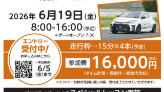 今回も走行枠は15分×4セットとたっぷり走り込めるスケジュール。フリー走行するだけでなく、プロドライバーのコース内レッスンや同乗レッスンもあり、スキルアップに最適。